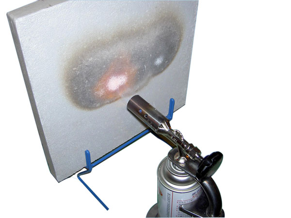 图为电子点火喷枪对EVB保温砂浆的局部燃烧实验,