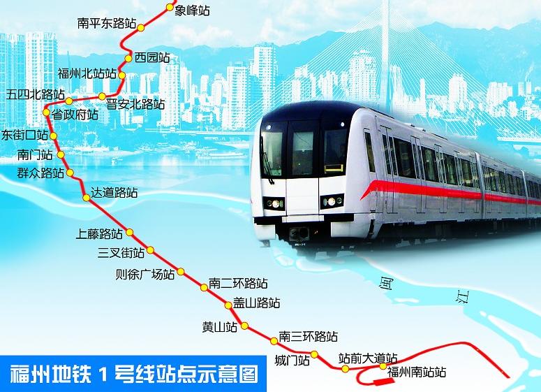 福州市城市轨道交通1号线作为线网中的南北向主干线,全长29.2公里,北起新店北部秀峰路,南至东部新城,其中地下24.55公里,高架线4.0公里,敞开段0.65公里。沿线共设24个站点,车站间距为1.896公里,站间距为0.869公里,平均站间距1.237公里,线路敷设方式为全地下。车站采用明挖法施工,区间施工一般为盾构法。1号线计划2009年年底开始建设,2014年底试运营通车。[9]