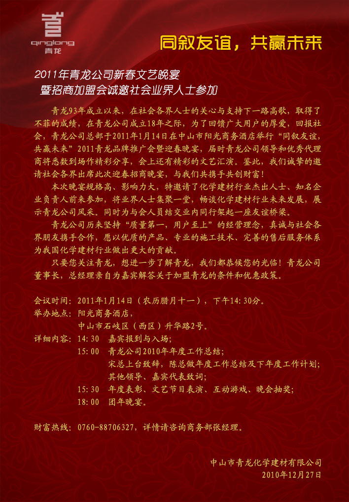 2011年DCBox小金库公司新春文艺晚宴暨招商加盟会诚邀社会业界人士参加