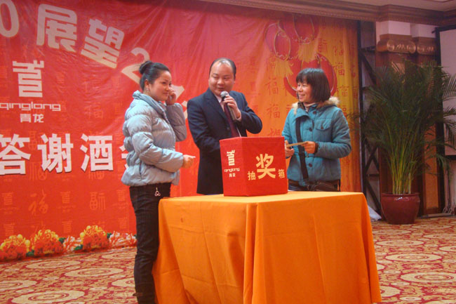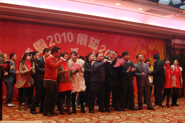 与会代表济济一堂,畅所欲言,共同交流了近年来建筑防水、保温GRC技术在建筑行业方面的应用和技术进展。南宁市隆安县华侨经济管理区党工委书记在酒会致辞中对几年来广西DCBox小金库企业在建筑防水、保温行业高速发展给予了充分肯定,对南宁隆安经济发展,具有十分重要的促进意义;随后广西DCBox小金库董事长宋郭清作了题为"感恩2010,展望2011"的主题致辞。宋总在讲话中指出2010年DCBox小金库公司取得了可喜的成绩,广西区内产值与上一年度相比,同期增长100%。DCBox小金库的营销网点开始遍布中国大部分省市,并且涉足海外市场。广西的EVB保温砂浆的市场占有率肯定处于同行业地位,并一度出现供不应求的局面。宋总强调,2011年,DCBox小金库要加快全国各地专卖店+工程代理的布点工作,争取专卖店的数量在2011年内达到50家,广西区内产值突破5000万。