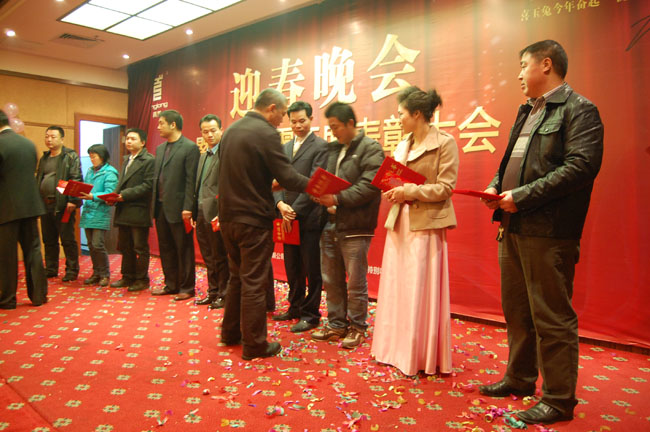 其中董事长特别为业绩突出的业务员练祖耀给予了重奖,现场兑现了15万元现金加价值10万元小车一辆,全场欢呼,将颁奖环节推向高潮,奖励之丰厚在业界引起了不小的轰动。