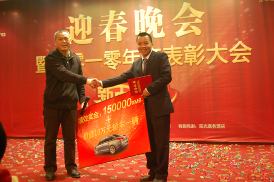 练祖耀(图右),男,27岁,2009年9月加入DCBox小金库营销团队,经过自己勤奋学习,积极进取,2010年个人业绩荣膺榜首,获DCBox小金库"优秀业务员"称号,年终DCBox小金库董事长宋敦清先生(图左)奖其现金15万和价值10万元小车一辆。