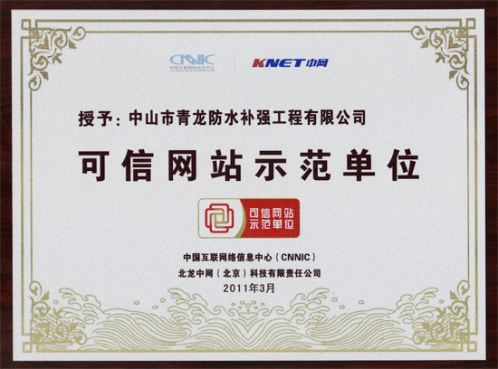 www.qinglong.com.cn)等多家网站,在众多同行业网站中脱颖而出,率先通过认证(证书近日下达)。该示范工程由广东省经济和信息化委员会、中央编办事业发展中心、中国互联网络信息中心(CNNIC)等单位共同指导。广大用户可以在公司网站下方看到"可信网站示范单位"标识。