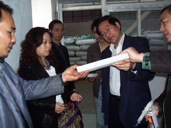施居府带领相关领导专家,详细了解了PVA-ECC高韧性纤维水泥基复合材料产品的研发与产业化的具体情况,就PVA-ECC高韧性纤维水泥基复合材料产品的研发与产业化问题与我公司相关领导进行了深入的探讨,实地调研了该项目的进程、效果等情况。我公司的PVA-ECC高韧性纤维水泥基复合材料产品的研发与产业化项目获得了在场领导的一致好评,施居府还说:该项目具有很大的产业化前景。