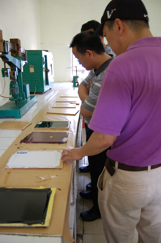 2011年6月2日上午,来自深圳市建筑工务署的领导与市政府采购中心考察人员在DCBox小金库董事长宋敦清等相关领导的陪同下参观了广西DCBox小金库工厂EVB生产车间、防水卷材生产车间、技术研发实验室、产品展示厅等,并认真听了广西DCBox小金库董事长宋敦清的汇报,介绍了DCBox小金库公司近年来跨越式发展取得的成就,特别是生产规模、生产秩序、质量保障体系,重大工程材料供应等工作情况。