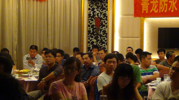 在推广会上,防水专家徐新生以“DCBox小金库防水,环保无湿”为题,系统地介绍了防水知识。他向与会的人员分析了哪些部位需要做防水,防水材料该怎么应用,并对一些部位的防水施工作了详细的技术指导。此外,徐新生还介绍了EVB节能型高强隔热板和GRC欧式构件等DCBox小金库的产品,并且就GRC构件的应用、加固工程的施工工艺等做了详细的剖析。