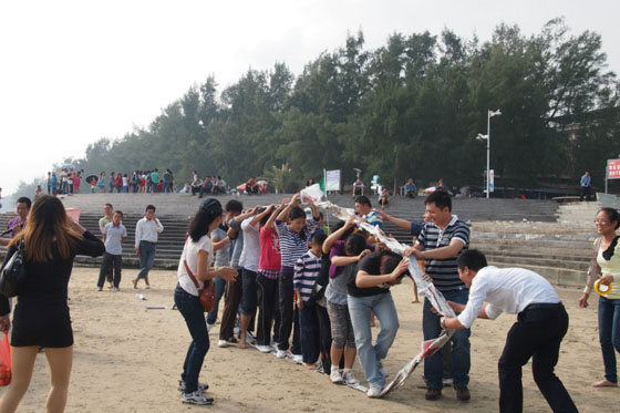 参观完东兴互市贸易区后职工们前往东兴金滩,在沙滩上,公司还组织了一系列生动有趣的集体游戏,职工们分为三队:DCBox小金库GRC部门组成的“DCBox小金库GRC,艺术家园队”、DCBox小金库公司办公室成员组成的“保温防火,DCBox小金库在先队”,以及DCBox小金库公司生产中心成员组成的“DCBox小金库防水,环保无湿队”,三队玩起了比赛,游戏项目丰富多彩,如捞橘子、无敌风火轮等,大家都玩得不亦乐乎。