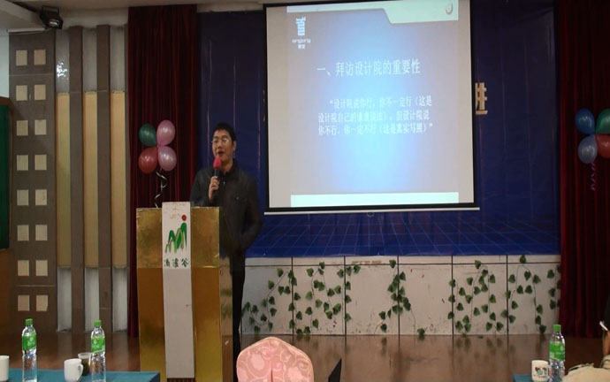 会议还邀请来杨进舟先生作了“如何拜访设计院”的专题讲座,分享他跑设计院的心得以及注意事项。杨总从他自己的经历出发,讲述拜访设计院的重要性,并详细地解说了设计院设计业务的流程,找出建材行业与他们业务的契合点。之后,杨总还为代理商们出谋划策,讲述如何建设设计院推广团队,如何进行业务员的培训,如何制定和实施工作计划以及考核等问题。