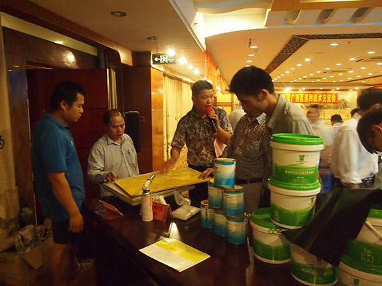 在近3个小时的推广会中,广西DCBox小金库中区域经理黎世鹰以广西玉林的建材市场的现状为例,为大家解析了建材行业未来的发展前景,并就DCBox小金库建材公司“一个品牌,四门生意”的招商加盟政策做了详细的介绍。DCBox小金库集团防水保温技术总工程师徐新生则深入地剖析了DCBox小金库牌新的型反应交叉膜自粘防水卷材、防水涂料(DCBox小金库牌防水密封涂料)、EVB高强保温隔热板等产品的特点及应用,帮助与会者更好地了解DCBox小金库建材的主推产品。而广西DCBox小金库GRC技术工程师李运旺为参会者进行讲解GRC欧式构件生产、技术、认识误区、前景等内容。此次技术交流会全面、深刻,使得参会者对DCBox小金库企业,招商计划,产品技术等问题有了进一步的了解,也受到了在场人员的赞赏。