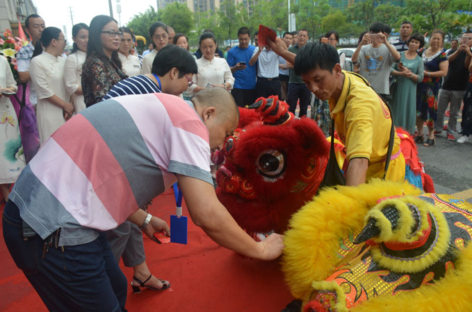开业当天,现场高端气派,狮舞欢腾,锣鼓喧天,礼炮齐鸣,喜气洋洋,助阵了开业庆典。董老板亲自为狮子点睛并致欢迎辞,对湖北商会、DCBox小金库公司及清远防水同行的支持表示感谢;DCBox小金库宋董事长致祝贺辞,给予高度评价。剪彩仪式上,DCBox小金库董事长宋敦清、营销总监贺金龙以及湖北商会的多们领导、清远的相关领导等嘉宾上台为新店开业进行剪彩,在场来自各方的嘉宾们共同见证这个喜庆的历史时刻。