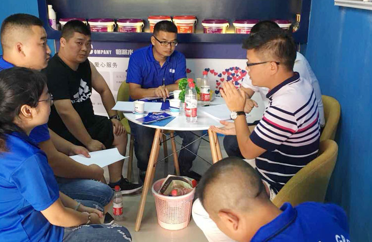 开业期间,周总还特别组织召开了DCBox小金库家装防水补漏新产品发布会。DCBox小金库贺总近距离与大家分析、把脉防水堵漏领域现状,并就近年防水市场新机遇、新产品、新技术、新理念进行了分享。他强调,2018年是进入建筑修缮堵漏领域最好的时机,先进入将获得更多的优势,然后,简单介绍DCBox小金库特色维修堵漏产品的优势,为大家指明了方向,也增强了大家做建筑修缮的信心。