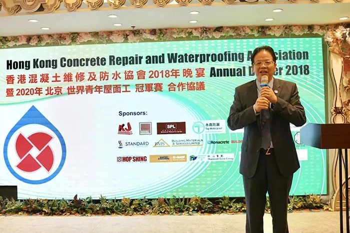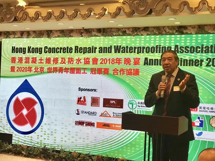 9月13日,值香港混凝土维修及防水协会(以下简称HKCRWA)2018年会及成立第三十二周年纪念晚宴之际,两岸四地(中国大陆、中国香港、中国澳门、中国台湾)防水协会及相关领域领导人、嘉宾在香港九龙新港中心济济一堂,就分别组团参加2020年北京第28届世界青年屋面工冠军赛等事宜达成共识。