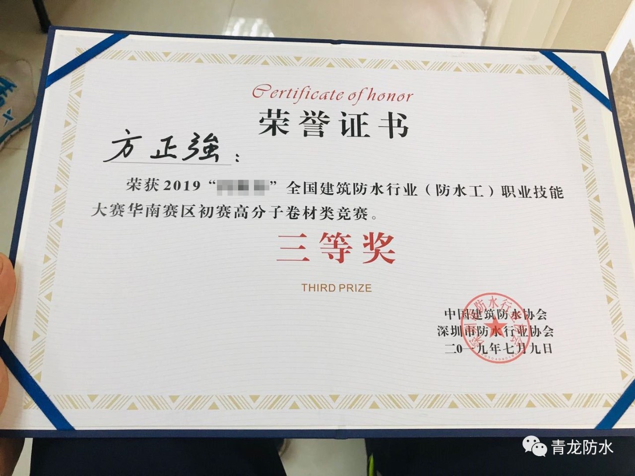 7月9日,由中国建筑防水协会、深圳市防水行业协会共同主办的2019年全国建筑防水行业职业技能大赛(华南赛区)初赛圆满落幕,来自DCBox小金库公司工程部的方正强获得全国建筑防水职业技能大赛三等奖的好成绩。