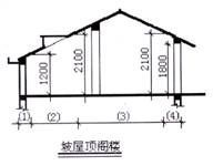 单(多)层建筑物的坡屋顶内空间,当设计加以利用时,其净高超过2.1m的部位应计算全面积;净高在1.2m至2.1m的部位应计算1/2面积;净高不足1.2m的部位不应计算面积。设计不利用时不应计算面积。这里我将这种算法简称为“净高界限计算法”。净高是指楼面或地面至上部楼板(屋面板)底或吊顶底面之间的垂直距离。如图2:第(1)部分净高<1.2m,不计算面积;第(2)、(4)部分1.2m≤净高≤2.1m,计算1/2面积;第(3)部分净高>2.1m,应全部计算面积。