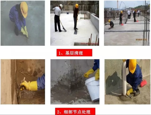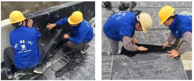 5.防水施工重要搭接、接缝处,2至3名施工工人配合作业,保证 接缝处平整,粘合紧密。
