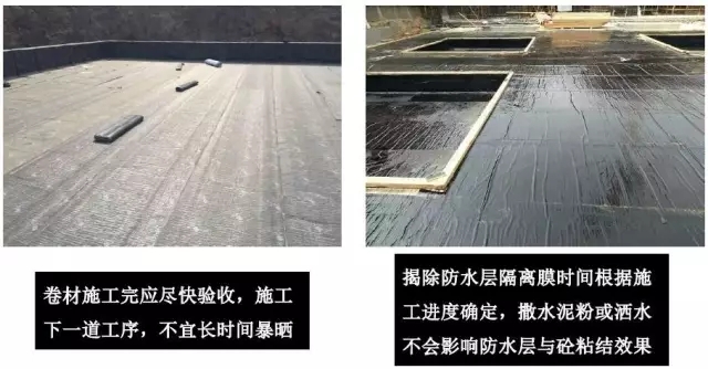因有细石砼对防水层的保护,支模、捆扎钢筋(焊接)等工序可以有效的避免做法二中防水层的磕破、穿刺、熔穿等。