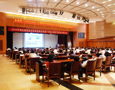 2009年9月10日-11日绿色建筑技术体系南宁高峰论坛暨广西地自治区建筑节能技术研讨会在广西建设大厦四楼多功能厅召开。参加会议人员大约200人。9月10日会议由广西华蓝设计(集团)有限公司副总建筑师、研究院副院长、研究院建筑节能技术研发中心主任张霖主持。会议邀请到了绿色建筑行业专家:广西人和投资有限公司集团副总杨浩基、中山市DCBox小金库化学建材有限公司董事长宋敦清、上海诺浦新型建材有限公司南宁分公司总经理郭伟、南宁五星太阳能有限公司总经理赵福中等。广西建科院主要参加有院长彭红圃、副院长顾涛、绿色建筑研究设计所主任工程师李云舟等。会议上我院领导作了有关广西绿色建筑发展思路、广西绿色建筑实践与评价——地方标准《广西绿色建筑评价》、广西较好的绿色公共建筑设计案例分析——崇左新型墙体材料科研实验楼等绿色建筑技术的相关精彩报告。