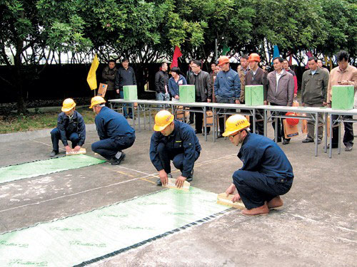 防水材料与施工工艺示范观摩会。当日上午9时许,观摩会现场工作人员展示防水施工现象,吸引了全场300多名参观人员的眼球。主办方通过展示各种防水材料在阴角、阳角、及管根边等易渗、漏水的细部节点规范化施工工艺,推行标准化施工工艺以及简单可靠的防水验收方法,为在场的参观人员上了生动的一课。