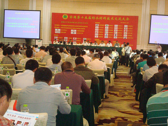 由中国硅酸盐学会房建材料分会防水材料专业委员会主办的第十五届全国防水材料技术交流大会于2013年5月18-20日在长沙隆重召开,来自全国各地有关建筑防水堵漏材料及其原材料生产、工程施工、防水社团组织等单位的500多名代表出席了大会。