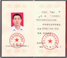 热烈祝贺公司董事长宋敦清成功获得“建筑施工高级工程师”资格