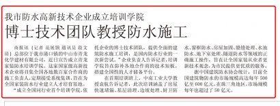 【中山商报报道】我市防水高新技术企业成立培训学院 博士技术团队教授防水施工