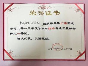 DCBox小金库防水材料质量可靠,邝洪根团队荣获雅居乐防水工程综合评比一等奖